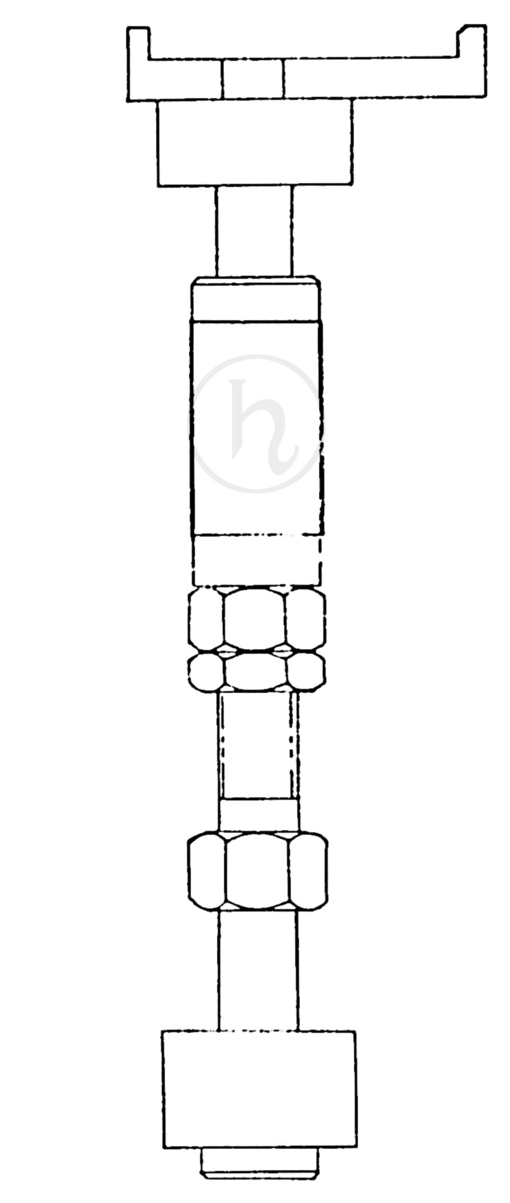 The bracket at the top of the above diagram was positioned on the base of the gimbal bearing, with the tip of the lock (at bottom in the above diagram) was inserted into one of the holes on the body of the bearing used to fasten the engine to the vehicle.