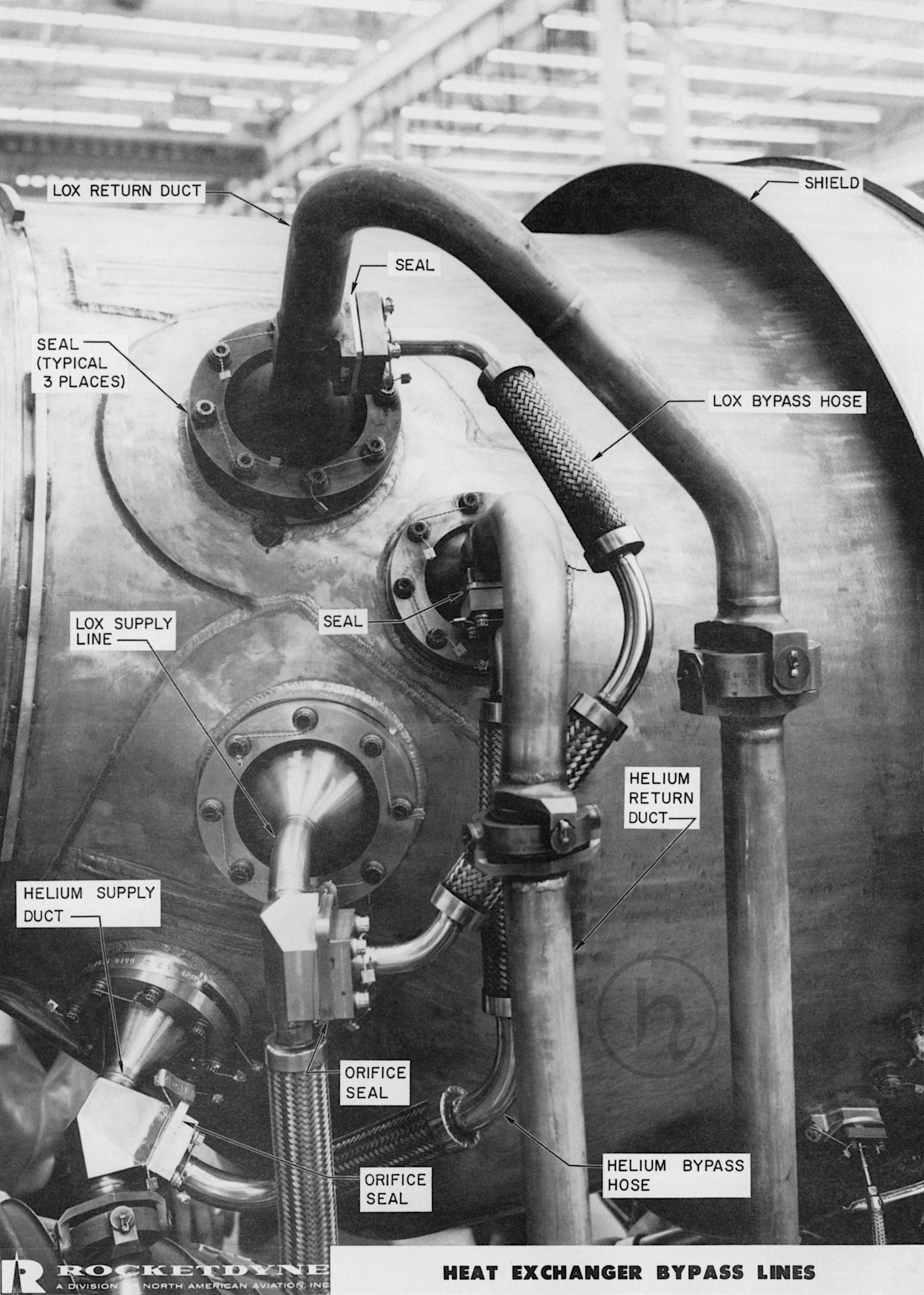 F-1 rocket engine heat exchanger supply, return, and bypass lines.
