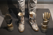A Project Mercury suit is part of a spacesuit exhibit in the former von Braun office exhibit space. This suit lacks a helmet; see my photo set of Gus Grissom's Mercury Helmet, on display in the Grissom Memorial in Mitchell, Indiana. I have a number of resources regarding the Project Mercury spacesuit. |